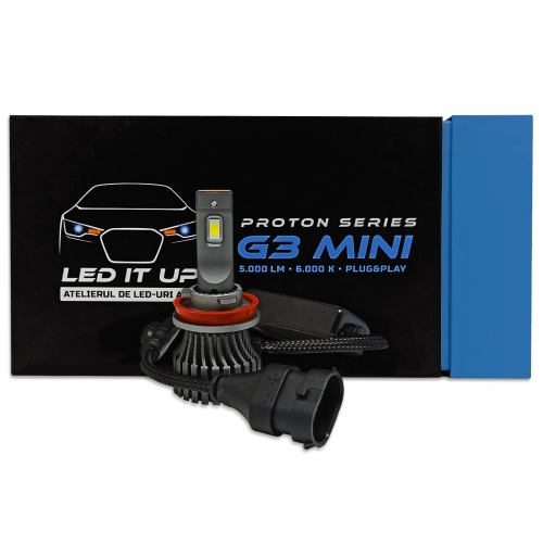 • Kit LED H8 / H9 / H11 / H16 Proton Series G3 Mini 6.000K, 5.000 lumens / set